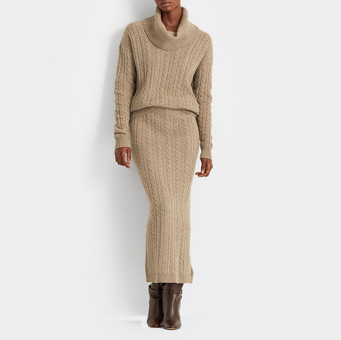Conjuntos de suéter de personalización de fábrica fuente de Venta caliente Conjunto de vestido de suéter de cuello alto de 2 piezas para mujer Conjuntos de suéter de talla grande