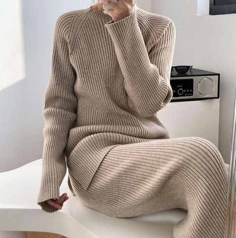 Phụ Nữ Của Bộ Giản Dị Tùy Chỉnh Ăn Mặc Mùa Thu Mùa Đông Đan Áo Len Pajama Đặt Dệt Kim Phụ Nữ Áo Len Đặt Mùa Đông Len Cashmere Lỏng